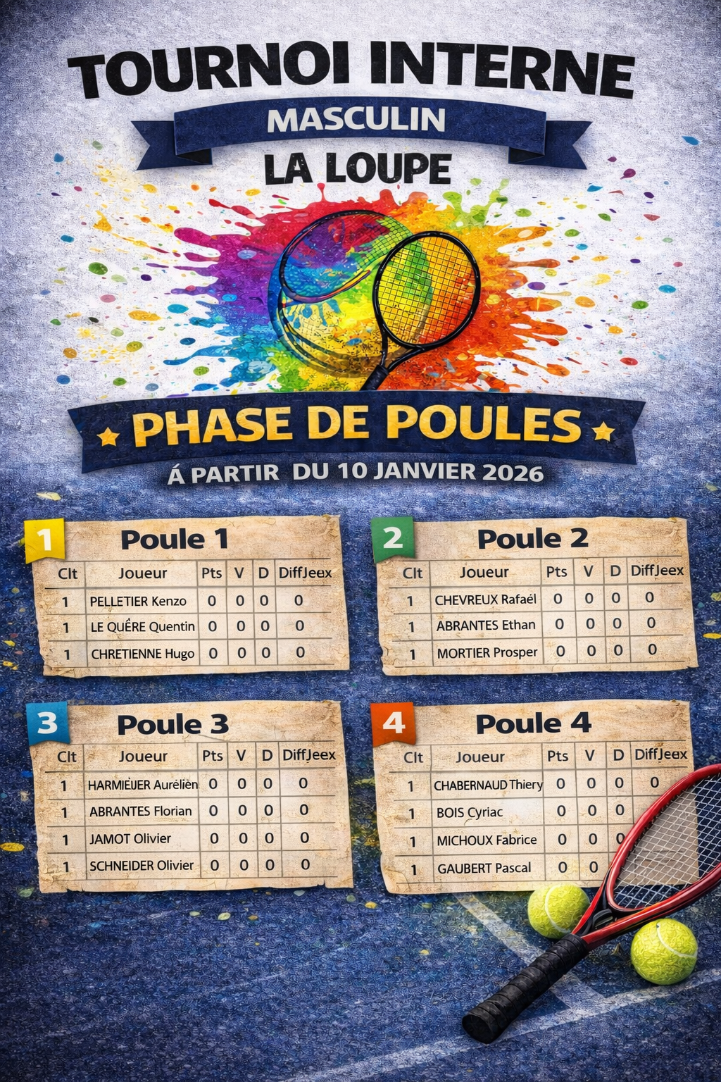 Suivez les résultats dans l'onglet "Tournoi interne 2026" du site.